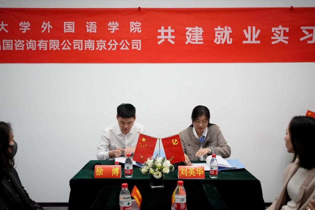 10月21日上午,肉视频 在南京新东方建立就业实习基地,院党委副书记刘英华、院长助理顾晓燕等5人,新东方前途出国南京分公司总经理、助理副总裁徐博,副总经理张晗,市场部副总监杨辉,仙林中心经理常晓庆参加此次授牌仪式并进行座谈交流。