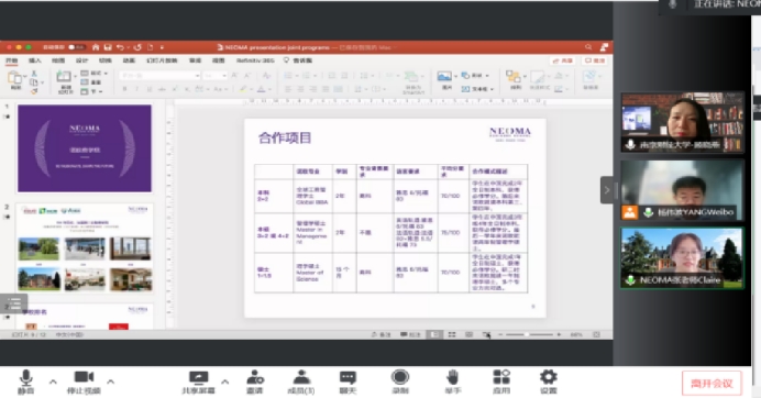 2022年6月23日下午,肉视频 院长助理顾晓燕老师与法国诺欧商学院(NEOMA Business School)中国办事处负责人张晶莹女士召开在线会议,商谈合作模式,初步达成合作意向。