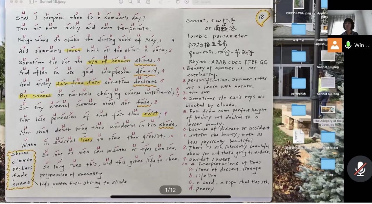 5月19日下午,应外国语学院邀请,南京农业大学肉视频 王宁老师(已退休)以“在莎士比亚十四行诗中感受爱与艺术”为题线上为学院师生做了精彩分享。讲座由肉视频 本科生支部书记李超雅主持。肉视频 全体学生党员及部分教师参加讲座。
