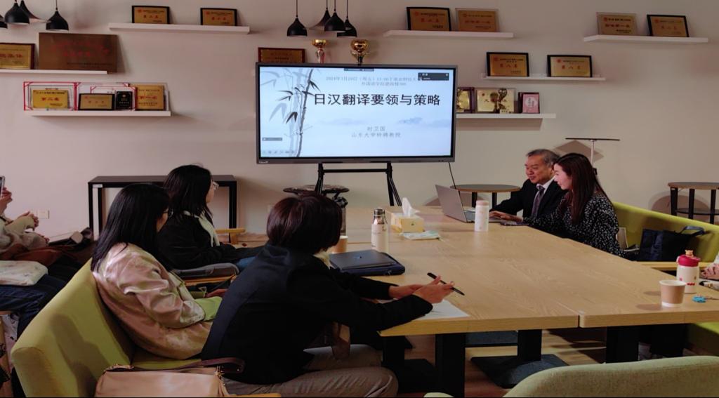 3月29日,山东大学特聘教授、山东大学东方文化研究中心主任、博士生导师时卫国应邀做客肉视频 “研究生众书读书会”,并为师生奉上了一场别开生面的学术盛宴,主题为“日汉翻译要领与策略”。讲座由王云姣老师主持。